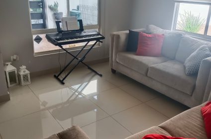 3 Recamaras, estancia, 2 y medio baños y medio baño exterior.