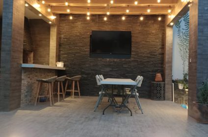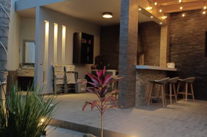 Cuenta con una hermosa palapa equipada con asador, cava, tarja, barra y conexiones para TV además de un baño exterior, para disfrutar de esas reuniones con la familia o amigos.